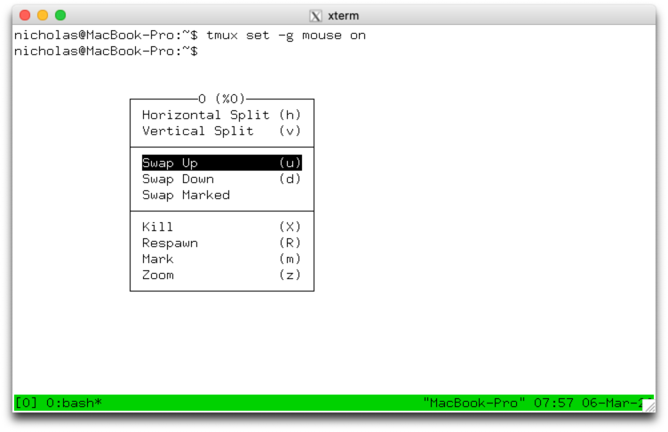 respawn-windowandrespawn-pane. - Custom menus with the